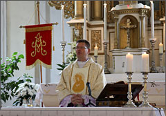 Sumos šv. Mišias aukojo ir pamokslą vėl pasakė monsinjoras iš Kauno. Kaip ir pamoksle per Votyvą, jis akcentavo, kad kiekvienas, atėjęs čia į bažnyčią, turi būti pavyzdžiu kitiems visur ir visada. Sumos metu giedojo Ariogalos parapijos Sumos choras.