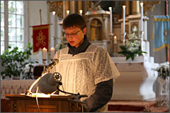 Votyvos šv. Mišias aukojo parapijos klebonas Gintautas Jankauskas, giedojo Nijolė Kniukštaitė – Vaičiulienė, o pamokslą pasakė svečias iš Kauno monsinjoras Vytautas Grigaravičius. Votyvos šv. Mišių auka buvo tiesiogiai transliuota Marijos Radijo bangomis Lietuvai ir internetu visam pasauliui. “Marijos radijas“ – tai šeima, Šventosios Dvasios galia vienijanti bendram tikslui darbuotojus, savanorius, klausytojus ir aukotojus. Todėl labai gera būti šios šeimos nariu, juolab kad jos ištikimoji globėja yra pati Švč. Mergelė Marija.