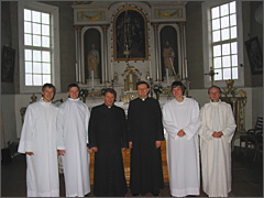 Savo prisiminimais apie šventę Lesčiuose pasidalino ir šv. Mišioms patarnavę Šiluvos propedeutinio kurso seminaristai: