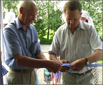 Po šios programėlės buvo paprašyta Raseinių rajono mero Petro Vežbavičiaus perkirpti atidarymo juostą, o Ariogalos parapijos klebono kun. Gintauto Jankausko pašventinti naujus bendruomenės namus. Gerbiamas klebonas palinkėjo visiems darnaus bendravimo, susiklausymo ir Dievo palaimos.