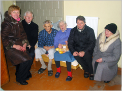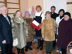 Vėliau klebonas kun. G. Jankauskas, Seimo narys E. Jonyla su žmona ir Carito pirmininke Elena Vaičiuliene ėjo aplankyti sunkiai sergančio Antano Baltmiškio ir jo žmonos Birutės Baltmiškienės. A. Baltmiškis daug metų buvo Ariogalos šv. arkang. Mykolo bažnyčios įvairių procesijų organizatorius, dvasingas ir rūpestingas katalikas. Carito pirmininkė E. Vaičiulienė padovanojo kalėdinį lauknešėlį, visi kartu maloniai pasišnekėjome, palinkėjome ligoniams sveikatos ir Dievo palaimos.