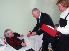 Nuoširdžiai bendravo, linkėjo sveikatos ir nuoširdžius sveikinimo žodžius artėjančių šv. Kalėdų ir Naujųjų metų proga kiekvienam ligoniui išsakė Seimo narys Edmundas Jonyla.