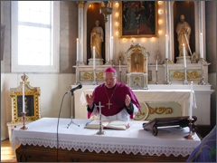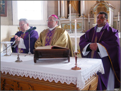 Pilna bažnytėlė vyresnio ir jaunesnio amžiaus žmonių dalyvavo šv. Mišiose, kurias aukojo Kauno vyskupas Jonas Ivanauskas. Kartu su vyskupu koncelebravo Kauno kurijos kancleris mons. Adolfas Grušas ir Raseinių dekanas kun. Juozas Kaknevičius. Pamokslo metu vysk. J. Ivanauskas sakė: