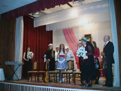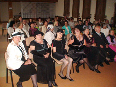 Scenoje – retro dekoracijos, Butkiškės kaimo bendruomenės entuziastės Vilma Augustinavičienė, Veronika Andrijaitienė su dukra Lina Reifoniene, Antanina Bortnikaitė ir keliolika žiūrovių stebino retro stiliaus apranga bei išmone pirmoje žiūrovų eilėje.