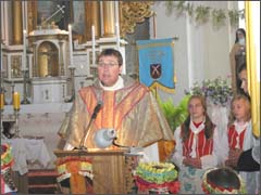 Kun. dr. A. Žygas aukojo Sumos šv. Mišias, pasakė pamokslą, vadovavo procesijai ir vėliau šventoriuje pašventino ąžuolinį arkangelo Mykolo koplytstulpį. Kun. V. Aukštakalnis patarnavo Susitaikymo sakramente šv. Mišių aukoje.
