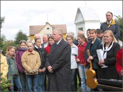 Vėliau šventoriuje prie koplytstulpio vyko šventinė programėlė.