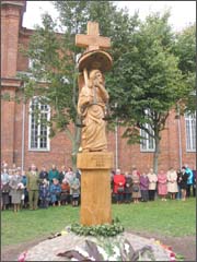 Pirmiausia kun. dr. A. Žygas pašventino medžio drožėjo Ričardo Ramanausko pastatytą ąžuolinį šv. arkangelo Mykolo koplytstulpį.