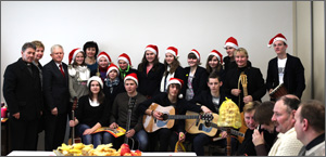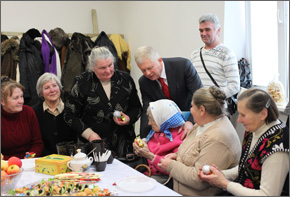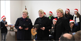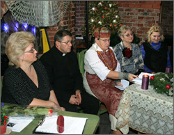 Seimo narys Edmundas Jonyla pasidžiaugė ir kartu padėkojo klebonui už gebėjimą suvienyti, suburti bendrai maldai visus – juk parapijos namai ir turi būti atviri visiems. Linkėdamas gražių švenčių ir stiprybės ateinančiais metais visiems įteikė dovanėlių. Dovanų gavome ir patys: „Caritas“ vadovė E. Vaičiulienė neįgaliesiems ir svečiams padovanojo po šiltas pačios megztas kojines.