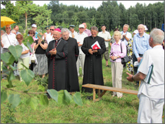 Pasiramsčiuodami lazdelėmis, susikibę žilagalviai, puikiai menantys pokario laikus ir besišypsantis jaunimas, tik iš savo tėvelių ir senelių girdėję apie karą, pokarį, sovietmetį bei kovas dėl Nepriklausomybės atkūrimo. Alinantis karštis ir dar tik augantis būsimasis pavėsis neišgąsdino šventės dalyvių. Rimti, susikaupę, kai kurie šnabždėdami maldą žmonės pasitiko Kauno arkivyskupą Sigitą Tamkevičių, Kauno arkivyskupijos kurijos kanclerį monsinjorą Adolfą Grušą, Ariogalos šv. arkangelo Mykolo bažnyčios kleboną Gintautą Jankauską, LR Seimo narę Vincę Vaidevutę Markevičienę, Seimo narių padėjėjus, mokslininkus istorikus – dr. Aldoną Vasiliauskienę, dr. Kazį Račkauską, 1951 – 1953 metų Šliužių kaimo pradžios mokyklos mokytoją Bronių Kemzūrą, poetę ariogalietę Zenę Sadauskaitę, garbius įvairių Vilniaus, Kauno, Raseinių organizacijų vadovus.