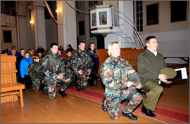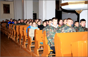 Iškilmingai paskelbus, jog stovykla atidaryta, visi 68 jaunieji šaliai – stovyklos dalyviai iškilminga rikiuote nužygiavo į Ariogalos šv. arkang. Mykolo bažnyčią, kur jaunųjų šaulių laukė Ariogalos parapijos klebonas Gintautas Jankauskas.