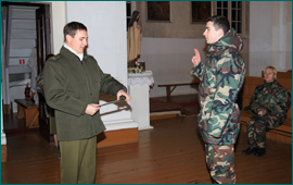 Galutinai įsikūrus Ariogalos gimnazijoje ir apsitvarkius bendras gyvenamas patalpas jaunųjų šaulių laukė susitikimas su Lietuvos Karo akademijos II kurso kariūnu Algirdu Spurga. Kariūnas informatyviai papasakojo apie įstojimo kriterijus į LKA, supažindino su akademijos gyvenimu: laisvalaikiu, mokslais, pramogomis, karyba. Jaunieji šauliai reiškė didelį susidomėjimą LKA vis užduodami klausimus svečiui kariūnui, kuris vos spėjo atsakinėti į šauliukų klausimus. Atsisveikinant su LKA kariūnu, manau, ne vienas jaunasis šaulys pagalvojo, kad greitai jis taip pat taps LKA kariūnu.