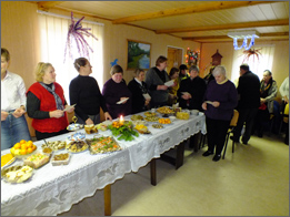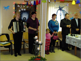Paskaitymus keitė adventinės giesmės, kurias atliko moterų kolektyvas vadovaujamas I. Jankauskienės. E. Vaštakienė pritardama gitara atliko keletą dainų, grojo Gėluvos kaimo armonikierius A. Cikas.