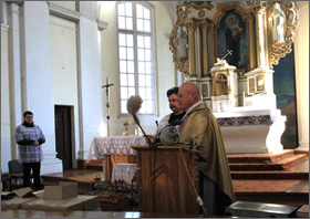 Kun. V. Brilius Sumos Šv. Mišių pamoksle sakė: „Šiandien jūsų parapijoje gavėnios susitelkimas. Visi susirinkome pamąstyti apie Viešpatį Dievą, kad galėtume geriau pasiruošti jo Prisikėlimo šventei. Mūsų šventės turi visokiausių tradicijų – prieš Velykas einame Kryžiaus kelius, per Velykas gražiname margučius, per Kalėdas valgome silkes, laužome kalėdaičius... Nors šiuos dalykus labai gerai prisimename ir šventai laikomės, vis dėlto iš tikėjimo norime kažko kito – daugiau, nei tik vieną kartą per metus valgyti margintų kiaušinių. Mes norime gyventi šviesoje, kad neliktų abejonių: kas, kaip, kodėl? Kodėl ateina skausmas į mano gyvenimą? Kodėl ne viskas sekasi? Ir kur tas Dievas, kuris man atrodo visada per mažai padeda?