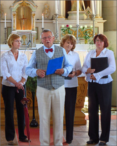 Po šv. Mišių žmones dar vienai valandai pabūti susikaupime ir pamąstymuose paskatino meninė programa. Šventas ir Tėvynei skirtas giesmes giedojo Kėdainių kultūros centro sakralinės muzikos ansamblis „Giesmė“, vadovaujamas Zenono Bernadišiaus. O Šiaulių dramos teatro aktorius Vladas Baranauskas pasveikino visus su 225 metų jubiliejumi, kai pastatytas Lesčių bažnyčios pastatas ir 730 metų sukaktimi, kai Lesčių vietovė paminėta kryžiuočių kronikose. Po to skaitė austrų kilmės vokiečių poeto R.M. Rilkės filosofinius eilėraščius, verstus tėvo Stanislovo. Šiuose vertimuose tiksliai atkartojama eilėraščio filosofinė mintis, nekreipiama dėmesio į ritmą ir pabrėžiama buvimo čia ir dabar, žmogaus reikalingumo Dievui mintis, abipusio nepaliaujamo žmogaus ir Dievo ryšio svarba.