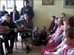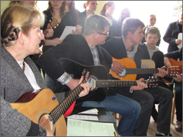 Tokiomis mielomis, širdingomis, melodingomis giesmėmis pradėjo adventinę popietę Ariogalos bibliotekoje sakralinės muzikos grupė „Giesmelė“. Kolektyvą, kuris jungia net 37 vyresniųjų klasių mokinius, Ariogalos gimnazijoje prieš dvidešimt du metus subūrė mokytoja Laimutė Neverdauskienė. Jame gitaromis groja 6 vaikinai ir 2 merginos. Labai mielai skambėjo mokytojos parinktos kalėdinės giesmės: tylios, kartu jaunatviškai šventiškos. Puiku, kad jų klausėsi ne tik suaugę, bet ir 3-4 klasių mokiniai. Biblioteka turi ir įgyvendina prasmingą uždavinį – ne tik pasiklausyti muzikos, eilių, bet ir suprasti jų esmę. Juk dažnas jaunėlis dabar ne itin žino, ką reiškia Adventas.