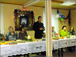 Klebonas kun. Gintautas Jankauskas skaitė maldas, laimino susirinkusiuosius, savo pamoksle sakydamas prasmingus žodžius, kad maldoje slypi stiprybė, reikia atjausti ir atleisti savo artimui, kaimynui ir netgi sau.. Ir tau bus atleista. Susirinkusiems dovanojo po kalėdaitį, ragindamas visus laužti kalėdaitį ir vienas kitam pasakyti po palinkėjimą.
