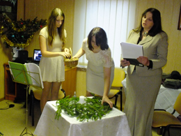 Popietę pradėjo kaimyninio Kėdainių rajono Pernaravos miestelio šeimyninis trio, skaitydamos jautrias ir melodingas eiles, pynė Advento vainiką – tai savotišką kalendorių, ženklinantį artėjančią Kalėdų šviesą – iš pradžių uždegė vieną žvakę, paskui dvi, tris ir keturias.