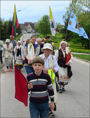 Apsistoję erdviuose parapijos namuose, piligrimai išklausė kun. Gintauto pasakojimo apie Kryžių kalną. Jis atskleidė, kad net priespaudos laikais žmonės puoselėjo tikėjimą net rizikuodami savo gyvybe. Tai vertė susimąstyti, kodėl šiais nepriklausomybės laikais bažnyčią lanko ne kiekvienas.