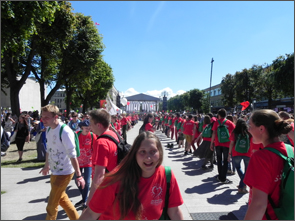 Po susikaupimo valandėlės Alytaus pagrindinę gatvę užtvindė jaunatviškas šurmulys – visas krikščioniškasis jaunimas su giesmėmis, maldomis, paskui kryžių patraukė į Rotušės aikštę, kur laukė didžioji LJD kulminacija – šventosios Mišios. Jose dalyvavo ne tik jaunimas, savanoriai, organizatoriai, bet ir Alytaus miesto gyventojai, svečiai.