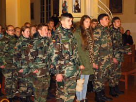 Trispalvė, suplevėsavusi mokyklos kieme, skelbė stovyklą atidarytą. Lietuvos himnas garsiai nuskambėjo kiekvieno susirinkusio lūpose. Nuskambėjo ir Kauno Vytauto Didžiojo 2 – osios rinktinės vado Žydrūno Šadauski o sveikinamoji kalba. 17 valandą, pagrindine miestelio gatve prasidėjo iškilminga eisena į Ariogalos šv. Arkangelo Mykolo bažnyčią, kur šv. Mišias už Lietuvos jaunimą, šaulius, Tėvynės laisvę aukojo klebonas Gintautas Jankauskas. Po šv. Mišių jaunieji šauliai priėmė pasižadėjimą. Startas duotas – užvirė tikrasis jaunojo šaulio gyvenimas. „Kaire, kaire, vienas, du, trys″ – viena koja, viena ranka, vienas garsas – mes visi esame kaip vienas. Vieningi, ryžtingi, tuo pačiu savaip unikalūs, bet degantys ta pačia dvasia kurti gražesnę saugesnę, tvirtesnę, pilietiškesnę, visuomeniškesnę Tėvynę. Gatvė užsipildė jauno šūksnio, girdėjosi kareiviškų žingsnių aidai, visi trimis būriais patraukėme vakarienės link. Išėjome, grįžome su tamsa. Tačiau mokykloje jau mūsų laukė uždegtos šviesos, paruoštos klasės. Mokykla spindėjo žinių šviesa – mums, jauniesiems šauliams, buvo vedamos įvairios paskaitos, kuriose susipažinome su topografijos pagrindais, susipažinome ir praktiškai išbandėme negarsinius signalo perdavimus. Teko pademonstruoti ir kūrybinius, bei muzikinius įgūdžius – atskiros jaunųjų šaulių grupės kūrė savo skanduotes, mokinosi pagrindinę šios stovyklos šaulio dainą. Į valgyklą pirmyn – atgal kelias nebetoks baisus, kai einama su daina.