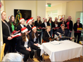 Gimnazistai giedojo Kalėdines giesmes, grojo gitara, skaitė skaitinius iš šv. Rašto. Šiam pasirodymui gimnazistus paruošė Ariogalos gimnazijos tikybos mokytoja Laimutė Neverdauskienė.