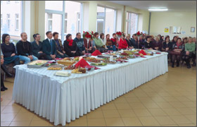Parapijos klebonas Gintautas Jankauskas dalino kalėdaičius, o jas lauždami renginio dalyviai negailėjo vieni kitiems šiltų ir malonių žodžių.