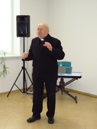 Po to susirinko tikintieji į Ariogalos parapijos namus. Klebonas kun. G. Jankauskas pristatė gerbiamą svečią mons. L. Vaičiulionį. Šis kunigas per visą nueitą kunigystės kelią pastatė Radviliškio Švč. M. Marijos Gimimo ir Kauno Šventosios Dvasios bažnyčias. Taip pat pastatė dvi klebonijas ir varpinę. Prelegentas nuoširdžiai papasakojo, kaip atliko darbus statant bažnyčias, kitus pastatus, kokių turėjo sunkumų ir pasisekimų. Mielai atsakė į pateiktus klausimus.