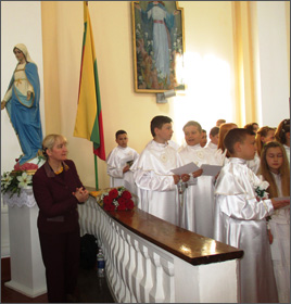 Vaikai Pirmajai Šv. Komunijai ruošėsi visus metus: lankė katechezės pamokas, sekmadieniais dalyvavo šv. Mišiose, klausėsi kunigo pamokymų. Vaikučius Pirmajai Komunijai paruošė ir giesmių mokė tikybos mokytoja Laimutė Neverdauskienė.