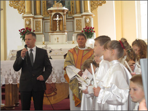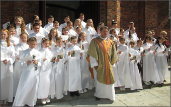 Gausus būrys vaikučių, lydimų savo tėvelių , išsirikiavo bažnyčios šventoriuje. Pasipuošę baltomis albomis, su žvakelėmis rankose, nekantriai laukė šv. Mišių. Ši diena mažiesiems ypatinga - jiems bus suteikta Pirmoji Šv. Komunija.