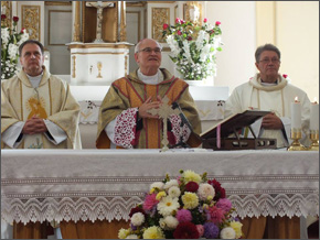 Šv. mišias aukojo vyskupas J.Kauneckas, kunigai G.Jankauskas ir A.Liepa. Buvo meldžiamasi už parapijos tikinčiuosius, už jų neišsenkančią meilę ir pagalbą bažnyčiai, kad ji būtų šviesi, graži ne tik dvasiškai, bet ir materialiai – nuolat prižiūrima, remontuojama, o ne naikinama, kaip buvo sovietmečiu. „Kas griauna, naikina bažnyčią, tas naikina save, naikina tautą, net galingiausią imperiją sunaikina“, – per pamokslą kalbėjo vyskupas ir išsakė daug prasmingų, pamokančių žodžių, apgailestavo, kad pasaulyje dar daug smurto, kančių, gal ir todėl, kad pasaulis žavisi ne tomis vertybėmis. Jis priminė, kodėl žlugo Romos imperija – ten buvo garbinamos ne dvasinės vertybės, o besaikės materialinės. Baigdamas pamokslą džiaugėsi, kad ši šventovė švyti šviesiomis spalvomis, gausiai susirinkusių meile jai.