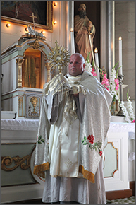 Iškilmingų šv . Mišių pabaigoje vyko procesija aplink bažnyčią, Švč.Sakramento garbinimas ir palaiminimas. Po jo svečiams kunigui Arūnui Simonavičiui ir Ąžuolų Būdos choristams padėkojo nuolat Lesčių bažnyčią aptarnaujantis Ariogalos parapijos klebonas Gintautas Jankauskas ir Lesčių parapijiečiai.