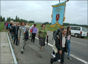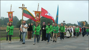 Arkivyskupas piligriminio žygio metu vedė Rožinio maldą, kiekvieno piligrimo lūpose nenutilo Viešpaties šlovinimas, giesmės, plėvesavo bažnytinės vėliavos.