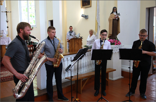 Po šv.Mišių vyko trumpas koncertas. Dvi garsios sesutės kanklininkės, laimėjusios daug prizinių vietų, – Sonata ir Miglė Tverijonaitės, atliko Verberio „Atminimas” ir Fosterio „Garsūs sapnai”. Vadovė Ramunė Jurkienė. Astijus Stašinskis ir Jokūbas Šiaudikis su pučiamaisiais atliko autoriaus Norman Farnworth kūrinį „Žaliasis Dunojus”. O mokytojas Arūnas Krištapavičius su savo mokiniais Luku Bajorėnu, Dominyku Abakanavičiumi ir Gyčiu Navakausku pučiamaisiais atliko autoriaus Pat. Ballard „Smėlio žmogus” ir autoriaus R. Percival „Miesto dabitos”. Vadovas A.Krištapavičius. Koncertą organizavo Ariogalos PPT pirmininko pavaduotoja Genė Kringelienė.
