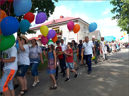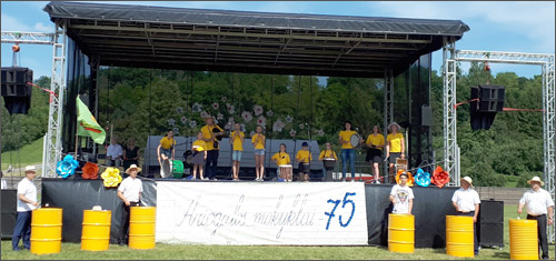 Skambant trankiai folkloro grupės„Mergicos +” muzikai margaspalviais balionais pasipuošusi šventės dalyvių kolona nusileido į Dainų slėnį, kur vyko šventinis koncertas (vedėjai mokytoja A. Gedgaudienė ir jos buvęs auklėtinis L. Ališauskas). Džiugu, kad į mūsų renginį atvyko gausus svečių būrys: Raseinių rajono savivaldybės meras A. Bautronis, Ariogalos mokyklos absolventas, ASU rektorius, VDU ŽŪA kancleris, profesorius Antanas Maziliauskas, Seimo vicepirmininko A. Nekrošiaus padėjėja S. Žuvelaitienė, Seimo narės V. Ačienės padėjėjos J. Jasiulienė, V. Trupiūtė, Raseinių rajono savivaldybės administracijos švietimo, kultūros ir sporto vyriausioji specialistė D. Vizbarienė, Viduklės Simono Stanevičiaus gimnazijos direktorės pavaduotoja ugdymui A. Samienė. Turėjome ir svečių iš užsienio – mus aplankė lietuvybės puoselėtojas Punske, Seinų lietuvių „Žiburio“ mokyklos direktorius Algirdas Vaicekauskas su žmona.