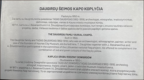 Šiose kapinėse prie koplyčios, kuriose ilsisi vieno tautinės vėliavos projekto autorių, archeologo, muziejininko, dailininko, kultūros veikėjo Tado Daugirdo ir jo artimųjų palaikai, penktadienį iškilmingai buvo iškelta Lietuvos valstybės vėliava, atidengta informacinė lenta.
