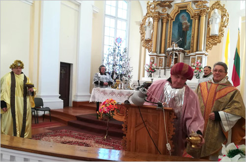 Klebonas kun. Gintautas Jankauskas visus parapijiečius pasveikino su artėjančia švente, paminėdamas, jog Šv. Mišios ir Žodžio liturgija buvo naudota iš antro sekmadienio po Kalėdų.Tačiau pamokslą klebonas pasakė apie Tris Karalius. Buvo sutarta dėl didesnio žmonių skaičiaus, kad jie bažnyčioje apsilankys šį sekmadienį ir paminėjo, kad nuo kitų metų Trijų Karalių iškilmė mūsų bažnyčioje bus švenčiama sausio 6 dieną.