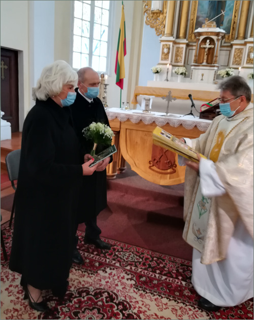 Noriu pasidžiaugti, kad net tokiomis sudėtingomis sąlygomis, laikantis visų karantino nurodymų, buvo suteiktas palaiminimas sutuoktiniams Teresei ir Stasiui Plisams.