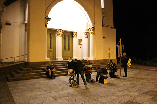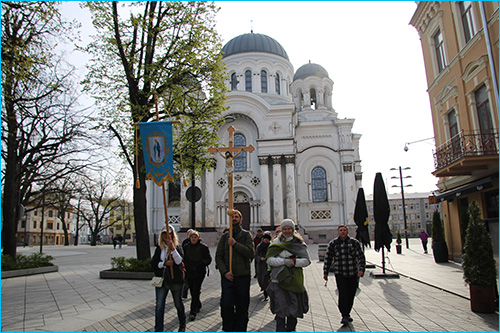 Gegužės 7 dieną 7 ryto prie Karmelitų bažnyčios susirinko 17 žmonių. Išklausėme šv. Mišias, mus palaimino. Ir leidomės į kelią link Laisvės alėjoje esančio Soboro, link Katedros, Raudondvario plentu palei Nemuną link Babtų kelio.