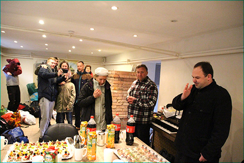 Įsikūrėme Ariogalos gimnazijos sporto salėje, pasidarėme viduryje bendrą stalą, moterims išdėliojome čiužinius. Vyrams, deja, pritrūko. Po vakarienės leidome sau pailsėti. Ryte pavalgėme, susitvarkėme ir išėjome į šv. Mišias.