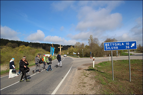 Po šv. Mišių klebonas mus palaimino. Leidomės toliau į kelionę. Nuėję iki Betygalos prie bažnyčios pasukome ne tuo keliu. Taip mums kelias prailgėjo ne šimtu kilometrų, o šimtas dvidešimt.
