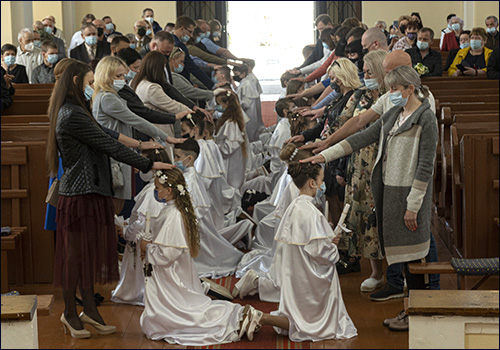 Dvidešimt keturi vaikučiai pasipuošę baltais aprėdais, su žvakėmis rankose žengė į bažnyčią lydimi tėvelių. Jų laiminančios rankos ant vaikų galvų ir linkėjimas užaugti dorais, tikinčiais žmonėmis.