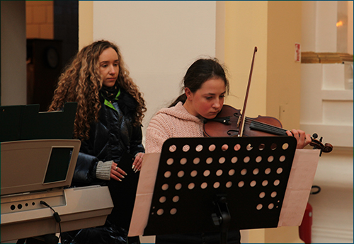 Puikų koncertą susirinkusiesiems padovanojo svečiai iš Seredžiaus. Dainas keitė eilės, kurias skaitė vedančioji. Smuiku labai gražiai griežė Santa Plekavičiūtė. Svečiams užgiedojus „Tyli naktis”, kartu su jais atsistoję giedojo visi tikintieji.