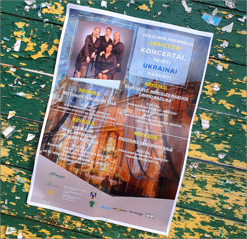 Šiuo metu visas tikinčiųjų pasaulis meldžiasi už Ukrainą ir jos žmones, kurie kovoja ne tik už savo, bet ir už mūsų visų laisvę. Reaguodamas į skaudžią ir sunkią situaciją Ukrainoje, vokalinis ansamblis „Inmezzo“ kartu su partneriais – Raseinių rajono savivaldybe ir Raseinių rajono kultūros centru – surengė neatlygintinų koncertų ciklą „Būkime stiprūs kartu“. Kovo 20 d., po Šv. Mišių, Ariogalos Šv. Arkangelo Mykolo bažnyčioje įvyko jau trečiasis ciklo koncertas.