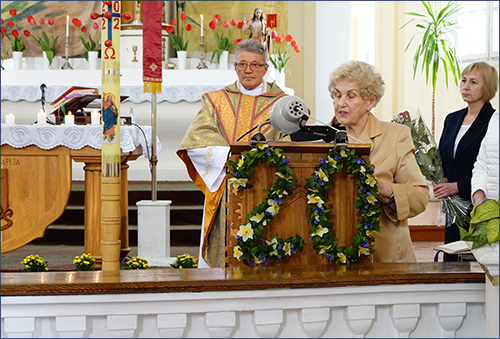 Prieš šv. Mišias mūsų klebonas kun. G. Jankauskas labai gražiai pasveikino E. Jonylą su jubiliejumi, palinkėjo jam visokeriopos sėkmės. Taip pat mūsų parapijoje klebonas aukojo šv. Mišias už gimtadienį švenčiančius pastoracinės tarybos narius, Sumos choro dalyvius ir ministrantus. Klebonas pasveikino Sumos choristę Kristiną Sadauskienę ir ministrantą Stasį Lauryną.