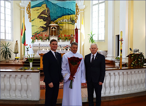 Gegužės aštuntąją Ariogalos šv. arkangelo Mykolo parapijos bažnyčioje buvo triguba šventė: ketvirtasis šv. Velykų sekmadienis – Gerojo Ganytojo sekmadienis sutapo su mūsų klebono kunigo Gintauto Jankausko dvidešimt metų darbo jubiliejumi Ariogalos ir Leščių parapijose, taip pat Raseinių savivaldybės administracijos direktoriaus Edmundo Jonylos jubiliejiniu gimtadieniu.