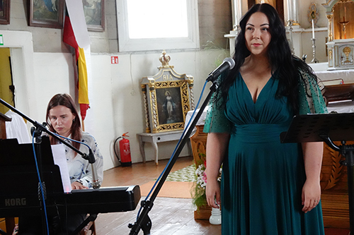 O bendrą susirinkusių maldininkų nuotaiką į tolimesnį dvasios pakilimą žadino nuskambėję pirmieji sakralinės muzikos akordai, nes iškilmė prasidėjo koncertu. Jaukioje, nedidelėje bet su gera akustika bažnytėlėje savo nepakartojamu sopranu klausytojus džiugino solistėLaura Povilaitytė – Dranseikienė, akomponuojant Godai Stanionytei.