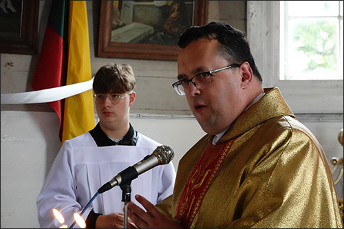 Iškilmingas atlaidųšv.Mišias aukojo svečias iš Kauno Kristaus Prisikėlimo (Žaliakalnio) parapijos Vikaras kunigas teol. lic. Nerijus Pipiras. Kunigas pasveikino iš įvairių Lietuvos kampelių susirinkusius tikinčiuosius, nes į atlaidus pagarbinti Dievą susirenka daug šios parapijos išeivių, gyvenančių jau kitur, nebe gimtinėje, bet nepamirštančių savo gimtosios bažnyčios ir jos tradicijų.