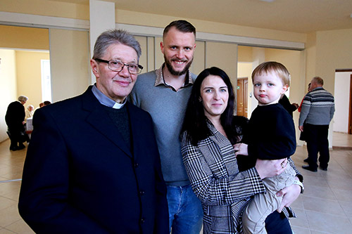 Pasveikinti klebono Gintauto taip pat atvyko jau 93-čiuosius metus skaičiuojanti jo Mamytė Elena, sesuo Leta su šeima ir visas pulkas giminaičių.