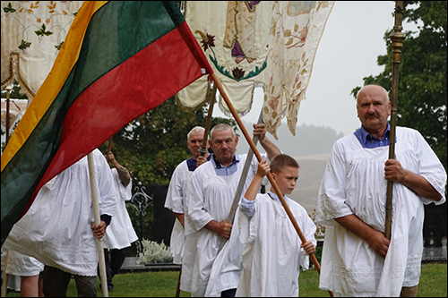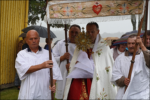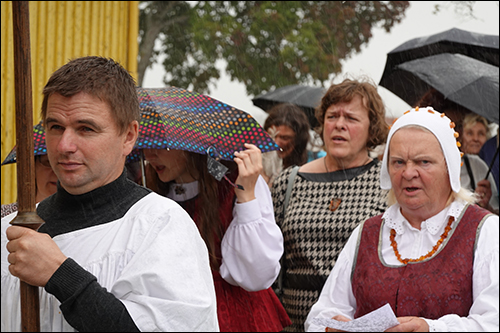 Po Mišių suorganizuota procesija aplink bažnyčią. Nors dulkė šiltas lietus, bet tai žmonių negąsdino.