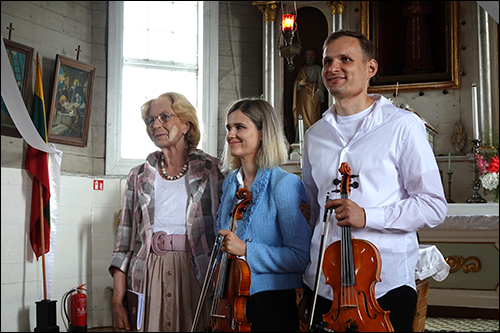 Kartu su D. Teišerskyte programoje virtuozišku smuikavimu visus atlaidų dalyvius užbūrė Gertrūdos ir Laimio duetas iš